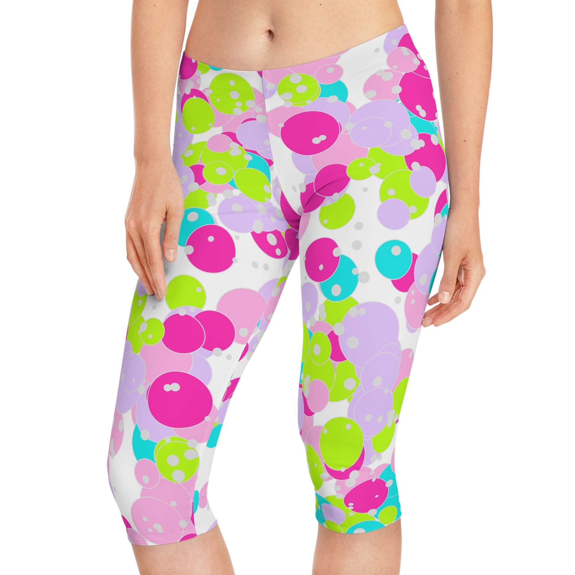 Elevate your activewear collection with these vibrant Women's Capri Leggings. Adorned with a playful all-over print, these leggings are perfect for yoga classes, casual outings, or lounging at home. The lively colors and patterns infuse joy into your wardrobe, making them a cheerful addition for any occasion. Designed for comfort and style, they cater to active women looking to express their personality through their attire. Whether for springtime activities, fitness events, or just embracing everyday comfort, these leggings are an ideal gift for birthdays, holidays, or any celebration.